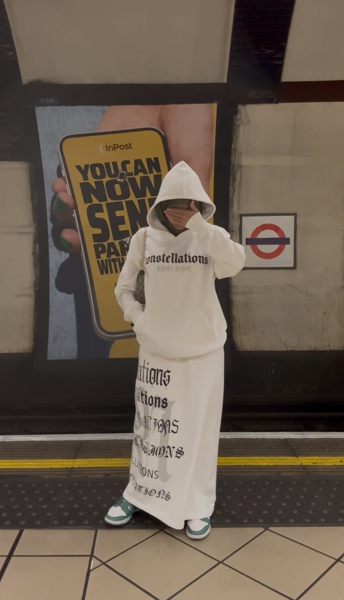 Ascend hire in the tracksuit with a twist, combining the legacy hoodie with the legacy skirt to achieve your skirt-suit, the uniform of your rising.